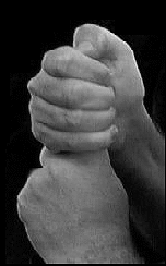2. Asetage käed fotol näidatud asendisse. Paremakäeliste inimeste puhul peaks teie parem käsi moodustama rusika vasaku nimetissõrme ümber; vasakukäeliste inimeste puhul peaks teie vasak käsi moodustama rusika ümber parema nimetissõrme. Sõrme pöidlaküüs peaks vajutama sõrme küljele, nagu näidatud, kohas, kus küünenahk lõpeb.